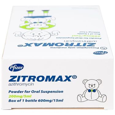 Bột pha hỗn dịch uống Zitromax 200mg/5ml điều trị các chứng nhiễm khuẩn (15ml) là sản phẩm do Công ty Pfizer sản xuất, với thành phần chính là Azithromycin, được dùng để điều trị những nhiễm khuẩn gây ra do vi khuẩn nhạy cảm như nhiễm khuẩn đường hô hấp trên và dưới, nhiễm khuẩn răng miệng, nhiễm khuẩn da và mô mềm… Zitromax 200mg/5ml còn được dùng để điều trị nhiễm Mycobacterium avium-intracellulare complex lan truyền ở những bệnh nhân nhiễm HIV giai đoạn tiến triển.