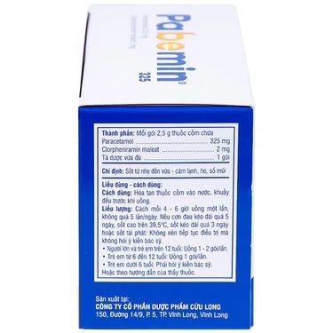 Cốm Pabemin 325 điều trị sốt từ nhẹ đến vừa, cảm lạnh, ho, sổ mũi