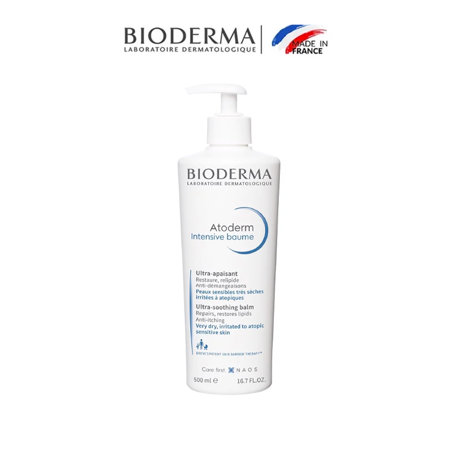 Kem dưỡng ẩm chuyên sâu cho da rất khô và nhạy cảm Bioderma Atoderm Intensive Baume là liệu pháp dưỡng ẩm giúp phục hồi làn da mềm mại, khỏe mạnh. Kem làm dịu tức thì cảm giác sưng ngứa do da bị kích ứng, nhẹ nhàng loại bỏ lớp tế bào sừng chết và tạo lớp tế bào mới, ngăn chặn sự xâm nhập của các dị nguyên gây dị ứng, khô da. Sản phẩm phù hợp cho da rất khô, da nhạy cảm dễ kích ứng, viêm da cơ địa. Sản phẩm chuyên dụng cho da khô, rất khô và da viêm da cơ địa bị ngứa, dành cho người trưởng thành, trẻ em và trẻ sơ sinh (trừ trẻ sinh non).