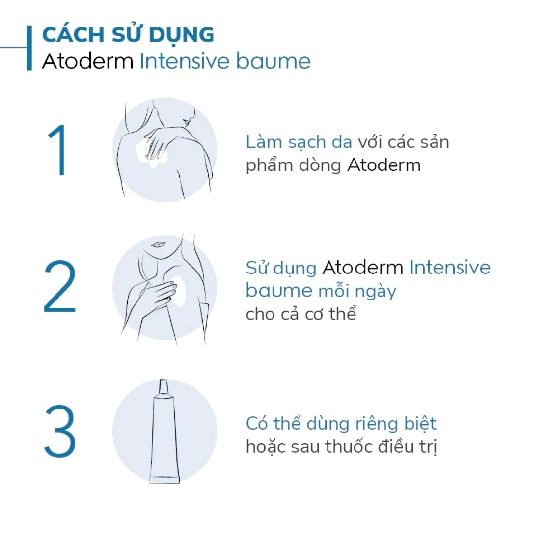 Thoa Atoderm Intensive Baume trên mặt hoặc cơ thể sau khi làm sạch hoặc dùng cho trường hợp bị khô da nhẹ.
