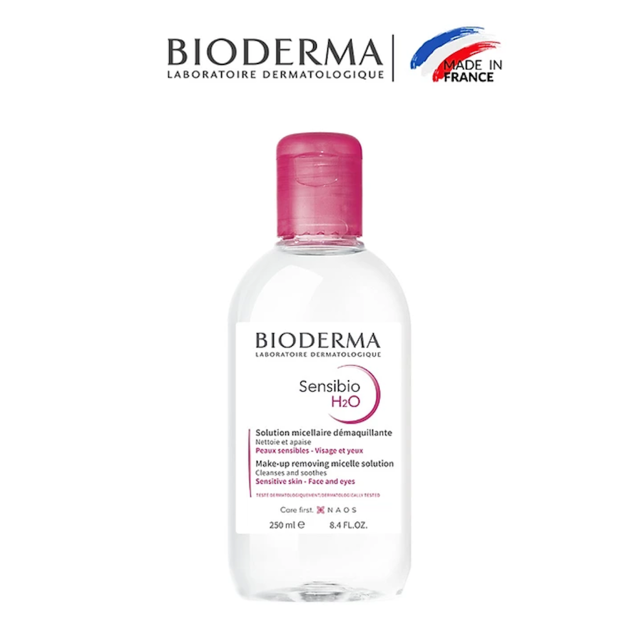 Nước tẩy trang cho da nhạy cảm Bioderma Sensibio H2O là nước tẩy trang dạng hạt mixen (micellar) đến từ thương hiệu Bioderma giúp nhẹ nhàng làm sạch bụi bẩn và các lớp trang điểm trên da (kể cả vùng mắt và môi) hông cần rửa lại bằng nước với công nghệ Micellar và các chiết xuất từ thiên nhiên giúp giảm thiểu khả năng kích ứng và làm dịu da hiệu quả.