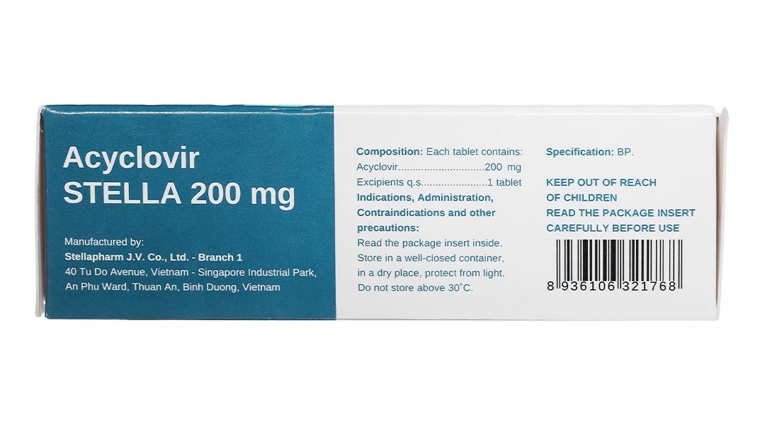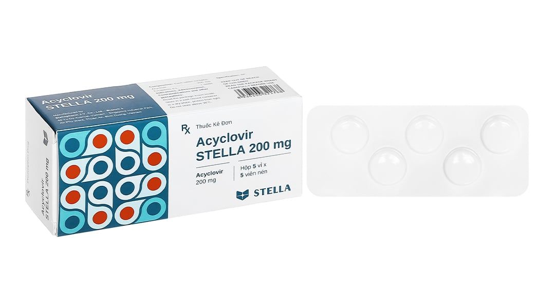 Thuốc Acyclovir Stella 200mg điều trị nhiễm virus Herpes simplex, bệnh zona, bệnh thủy đậu, dự phòng nhiễm HSV